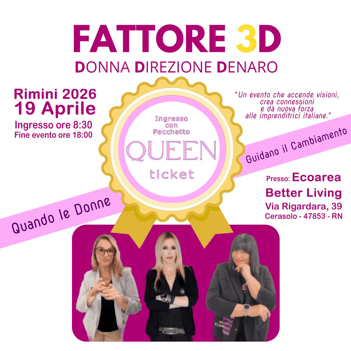 QUEEN ticket – Evento Nazionale: Fattore 3D – Donna Direzione Denaro – Donne Imprenditrici | 19 Aprile RIMINI 2026